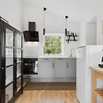 Ein Kühlschrank, ein Herd und Küchenutensilien sind ebenfalls in der Küche der 1-Zimmer- Holiday Home Quanna - 50M From The Sea In Funen By Interhome vorhanden.